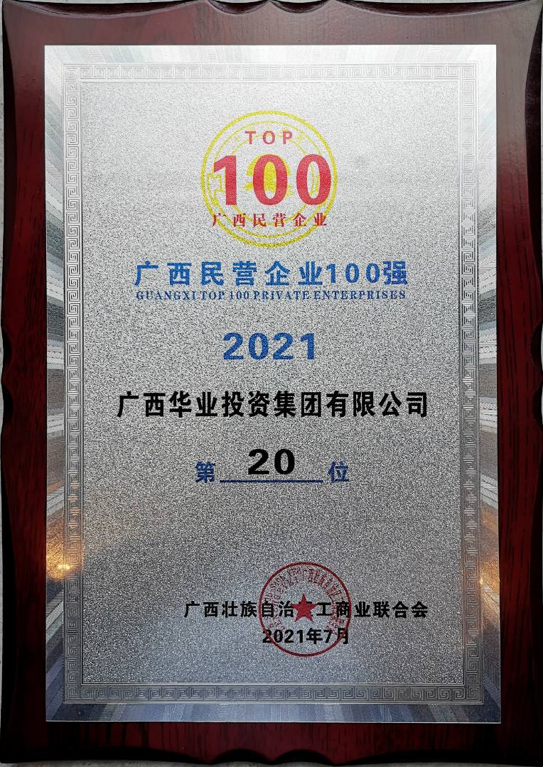 2020廣西民營(yíng)企業(yè)100強(qiáng)第21名